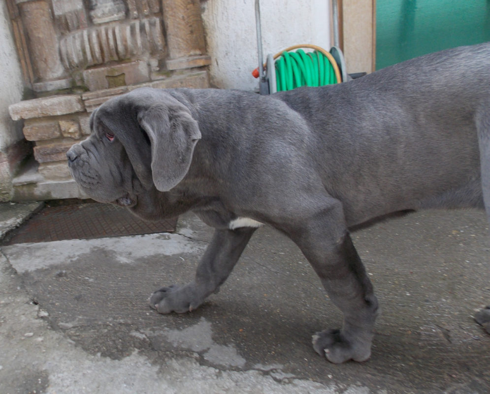 The Neapolitan Mastiff is covered in skin folds which are forming wrinkles. He has short and dense hair of the same length all over the body, perfectly straight without any signs of a wave. Grooming is quite simple. Regular brushing in order to remove dead hairs is enough. They shed moderately.